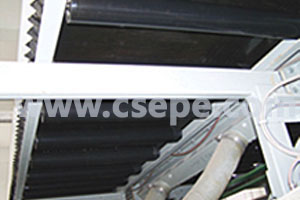 真空盒通過擺臂配置進(jìn)行升降,方便于摩擦帶的更換,并由螺栓禁錮在機(jī)架上,上面有摩擦帶和打孔的膠帶。
