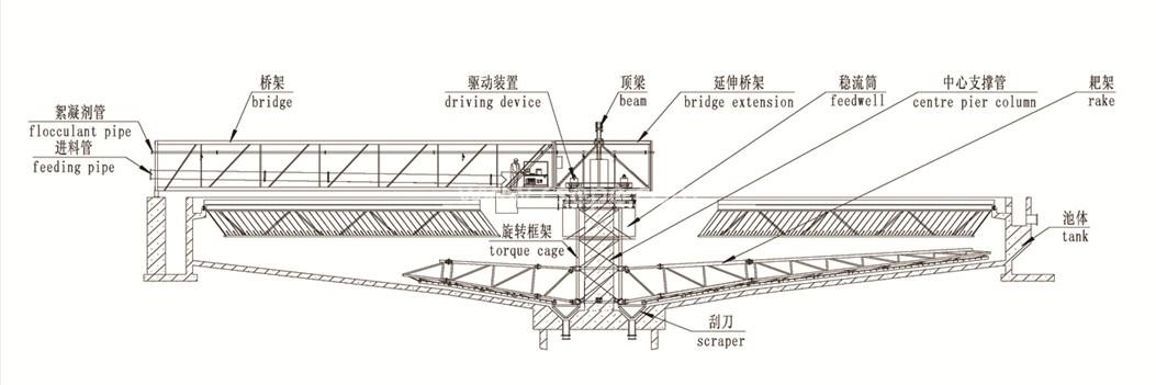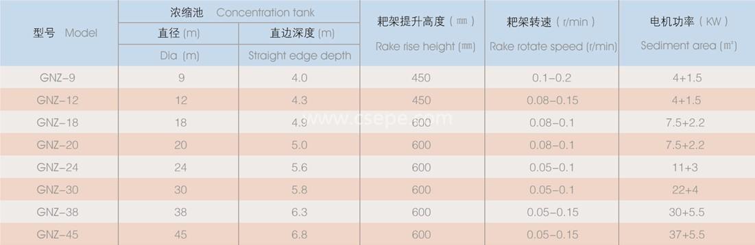 XNZ—□。X—斜板式;N—濃密機;Z—中心傳動;□—沉淀池直徑(M)
