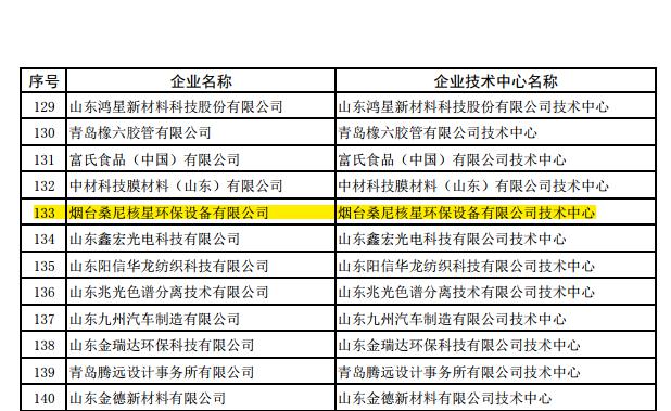 根據《山東省企業技術中心認定管理辦法》(2018年修訂)和《關于組織開展2020年山東省企業技術中心申報工作的通知》的有關規定。10月26日,由省發展和改革委員會組織申報的2020年山東省級企業技術中心擬認定名單公示,煙臺桑尼核星環保設備有限公司成功入選。